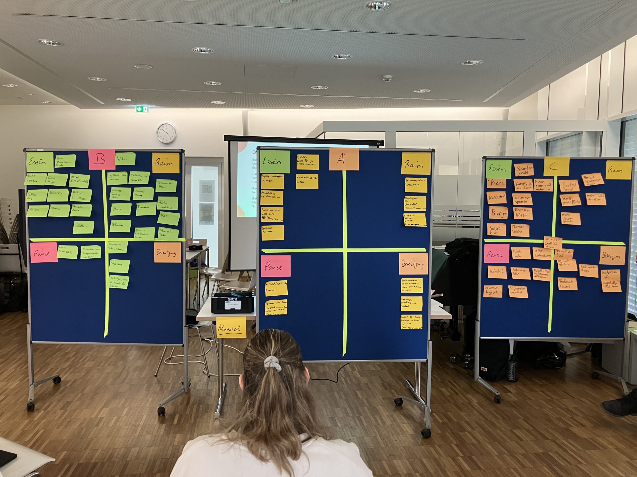 Da alle Beteiligten sich duzten und auf Augenhöhe miteinander sprachen, entstand eine offene, kreative Atmosphäre. Unter den vier Themenschwerpunkten Essen, Raum, Pause und Gestaltung wurden zahlreiche Ideen gesammelt.
