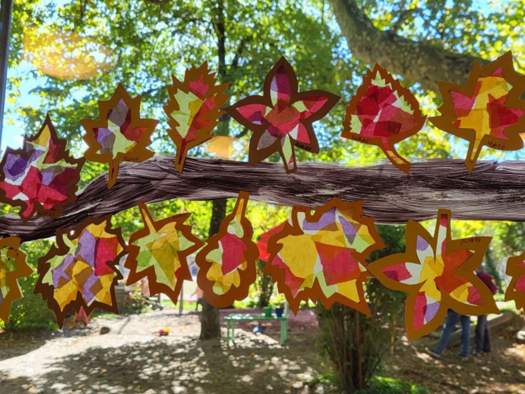Farbenfrohe Blätter schmücken die Kita Pfiffikus – drinnen und draußen.