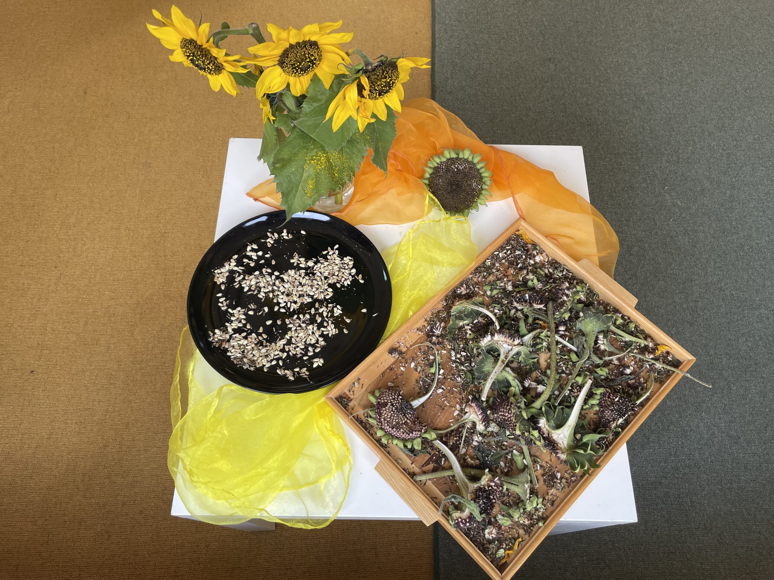 Fühlen, entdecken, Kerne trocknen: mit der Sonnenblume haben sich die Kinder der Kita Regenbogen beschäftigt.