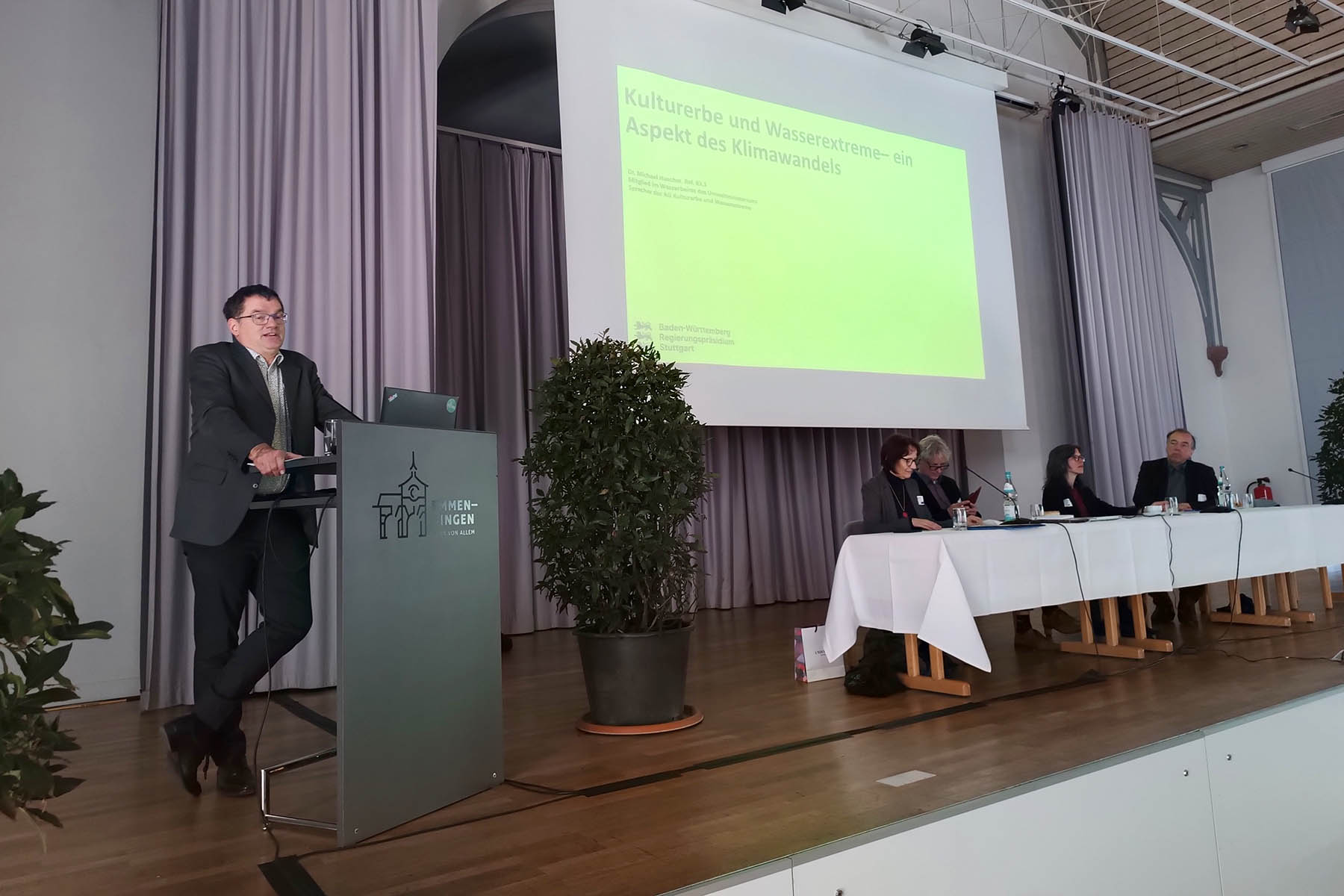 Wichtiges Thema: Kulturerbe und Wetterextreme. Dr. Michael Hascher vom Landesamt für Denkmalpflege im Regierungspräsidium Stuttgart, Mitglied im Wasserbeirat des Umweltministeriums und Sprecher der AG Kulturerbe und Wetterextreme, referierte.